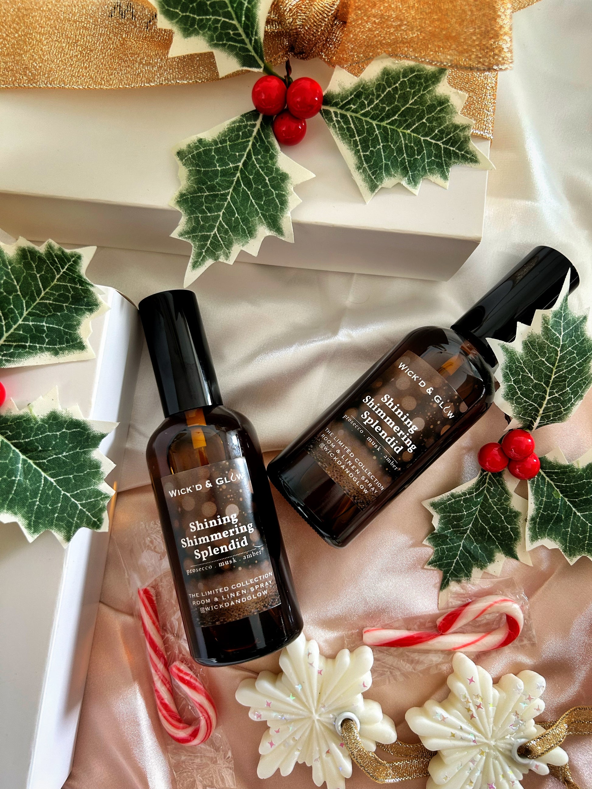 Shining Shimmering Splendid is a celebration in a bottle - effervescent prosecco bubbles uplift the air with sparkling brightness, while warm amber and sensual musk linger softly in the background. This scent is as magical as a flying carpet ride. A fragrance that feels both dazzling and radiant, one spritz is all it takes to set the mood for an unforgettable night.